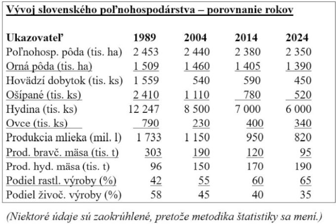 Slovensko sa za posledné desaťročia posunulo od potravinovej sebestačnosti k výraznej závislosti od dovozu. Oslabenie živočíšnej výroby, zmena štruktúry rastlinnej výroby a dlhodobo rastúce pasívne saldo zahraničného obchodu nie sú náhodné javy, ale dôsledok vývoja, ktorý sme si sami nastavili.