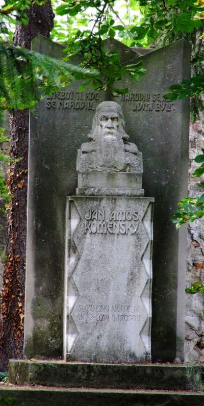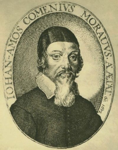 Jan Amos Komenský (* 28. marec 1592, Slovácko – † 15. november 1670, Amsterdam), český a moravský biskup Jednoty bratskej, jazykovedec, prírodovedec, humanista, filozof a politik, mal pravdepodobne slovenských predkov. Jeho priezvisko je zrejme odvodené od obce Komňa v okrese Uherské Hradiště. Vo všetkých obdobiach svojho plodného života, stráveného väčšinou v ďalekej cudzine, myslel predovšetkým na ľud svojej ťažko skúšanej vlasti. Neustále sa zaoberal plánmi na usporiadanie domácich kultúrnych pomerov, ako o tom svedčí pôvodné české koncipovanie jeho vrcholných diel – Veľkej didaktiky a Poučenia o materskej škole. Nemohol preto nevenovať pozornosť školám bratov, rozptýlených po Slovensku, ktorí boli vždy ochotní ujať sa pod tlakom rekatolizačných opatrení Habsburgovcov opustenej práce „na národa roli dedičnej“.