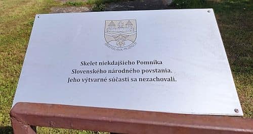 Zostalo len to, čo bolo z betónu. Okoloidúci ani netuší, čo to je. Preto mestská časť Ružinov osadila informačnú tabuľku, ktorá oznamuje: „Skelet niekdajšieho Pomníka SNP“.