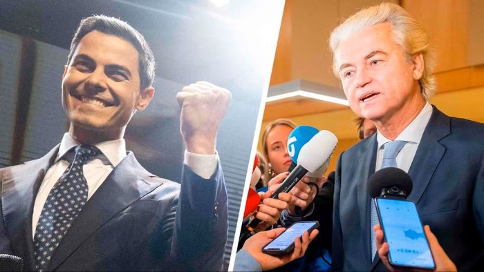 Vľavo víťaz Rob Jetten, vpravo porazený Geert Wilders… Foto: Heute, CC BY 4.0