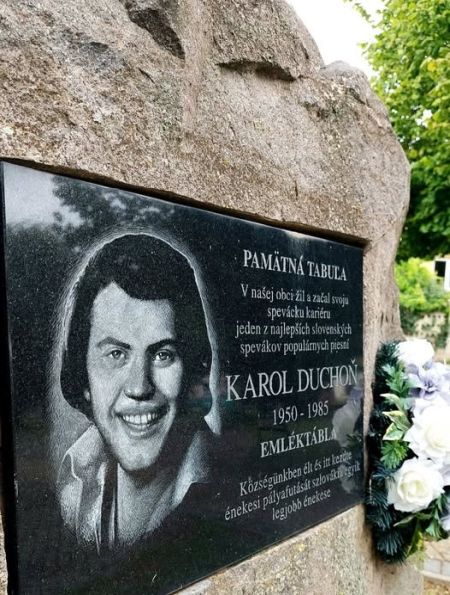 Pamätník v obci Jelenec, kde Karol Duchoň prežil rodičmi a starými rodičmi časť detstva a mladosti. Tu začal svoju spevácku kariéru so skupinou ATLAS. Foto: Artur Bekmatov