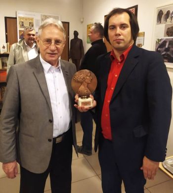 Jozef Leikert (vľavo) po prevzatí Ceny L. Novomeského v spoločnosti Lukáša Perného